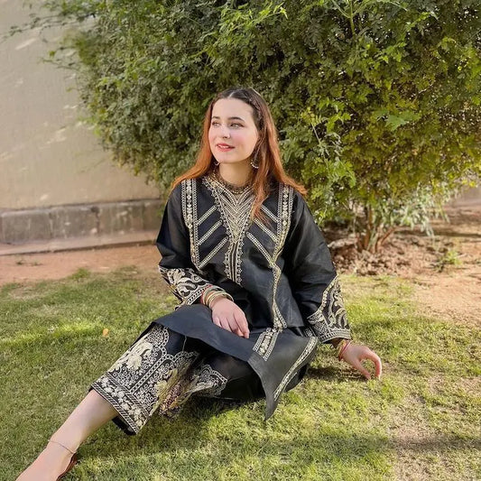 Black Women's Cotton Embroidery Two Piece